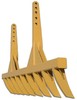 Dozer Blade Rakes offer tough AR400 steel tines engineered for minimum ground resistance and longer life. The universal design allows the rake to fit many different size moldboards. The thick tines are welded to a heavy wall steel tube. The rake mounts to standard moldboards with (2) welded brackets and (2) quick removal pins for quick and easy installation and removal. |
